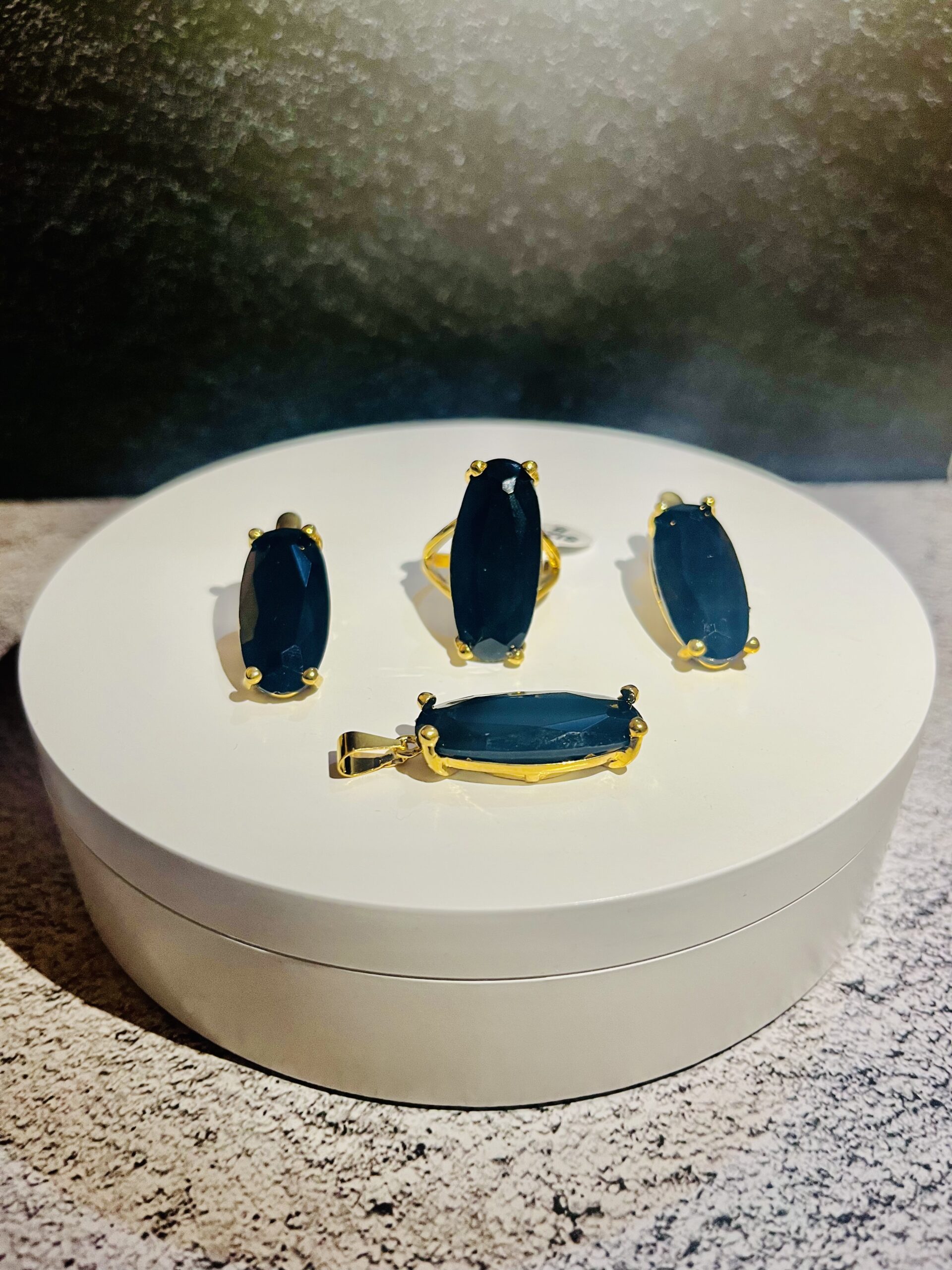 This set of Costume Jewelry contains a pair of earrings, pendant for necklace, and a ring. Suitable for daily wear, office, church and events.